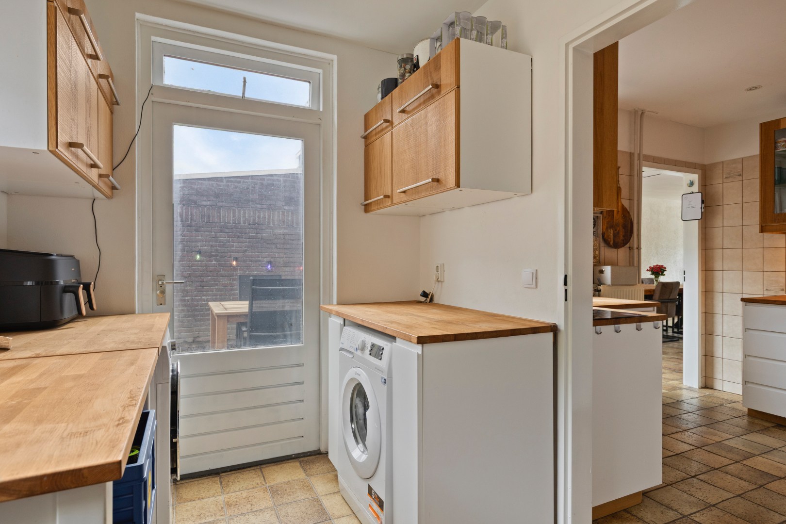 Begane grond: entree, toilet, keuken, woonkamer, garage, bijkeuken, terras/tuin