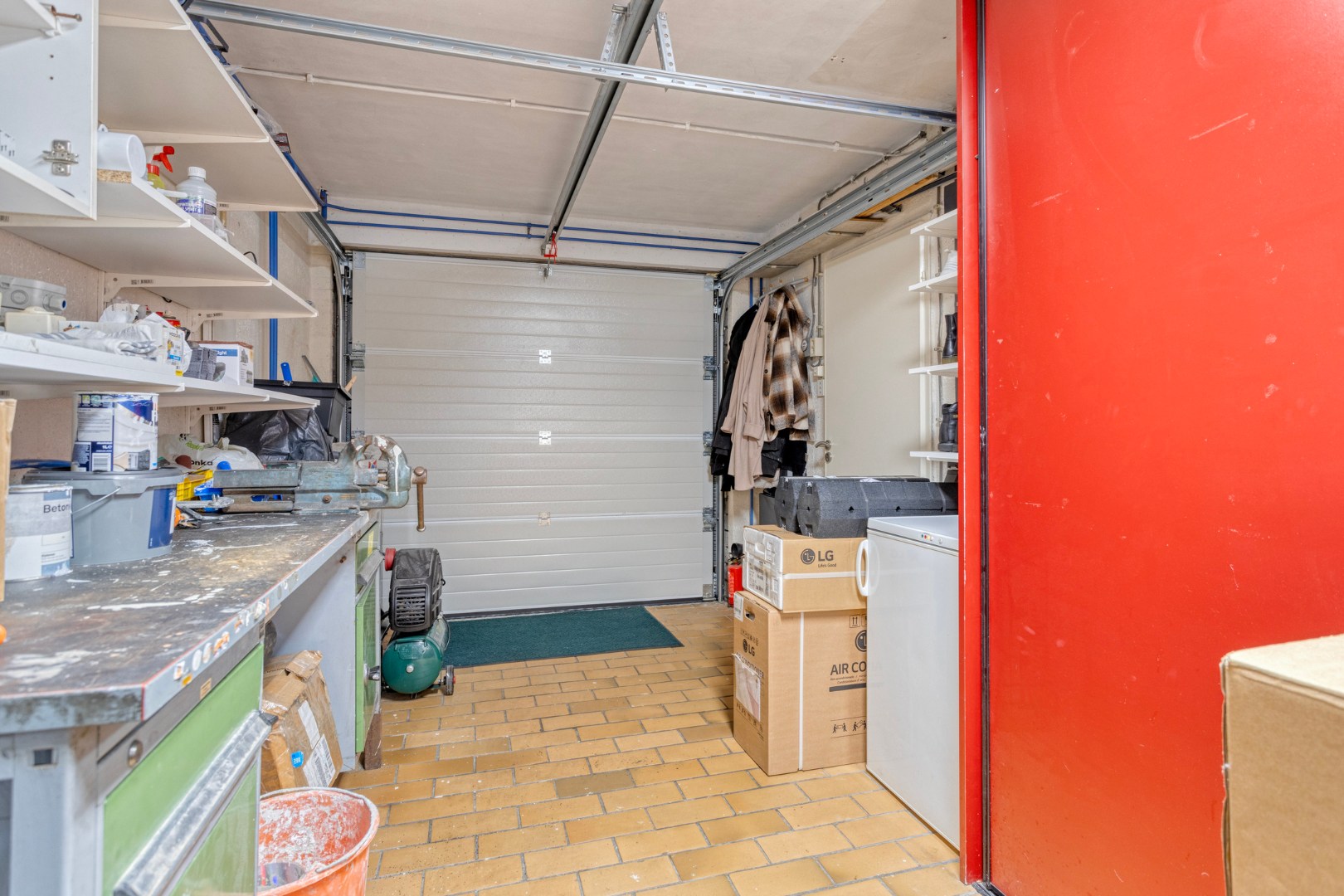 Begane grond: inkomhal, toilet, kamer, inpandige garage, terras/tuin
